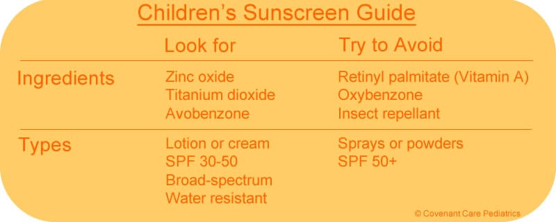 - Avoid sprays and powders in children, and all ages around the face. Inhaling the chemicals may be harmful. Spray the sunscreen on hand and rub on your child if you must use them.